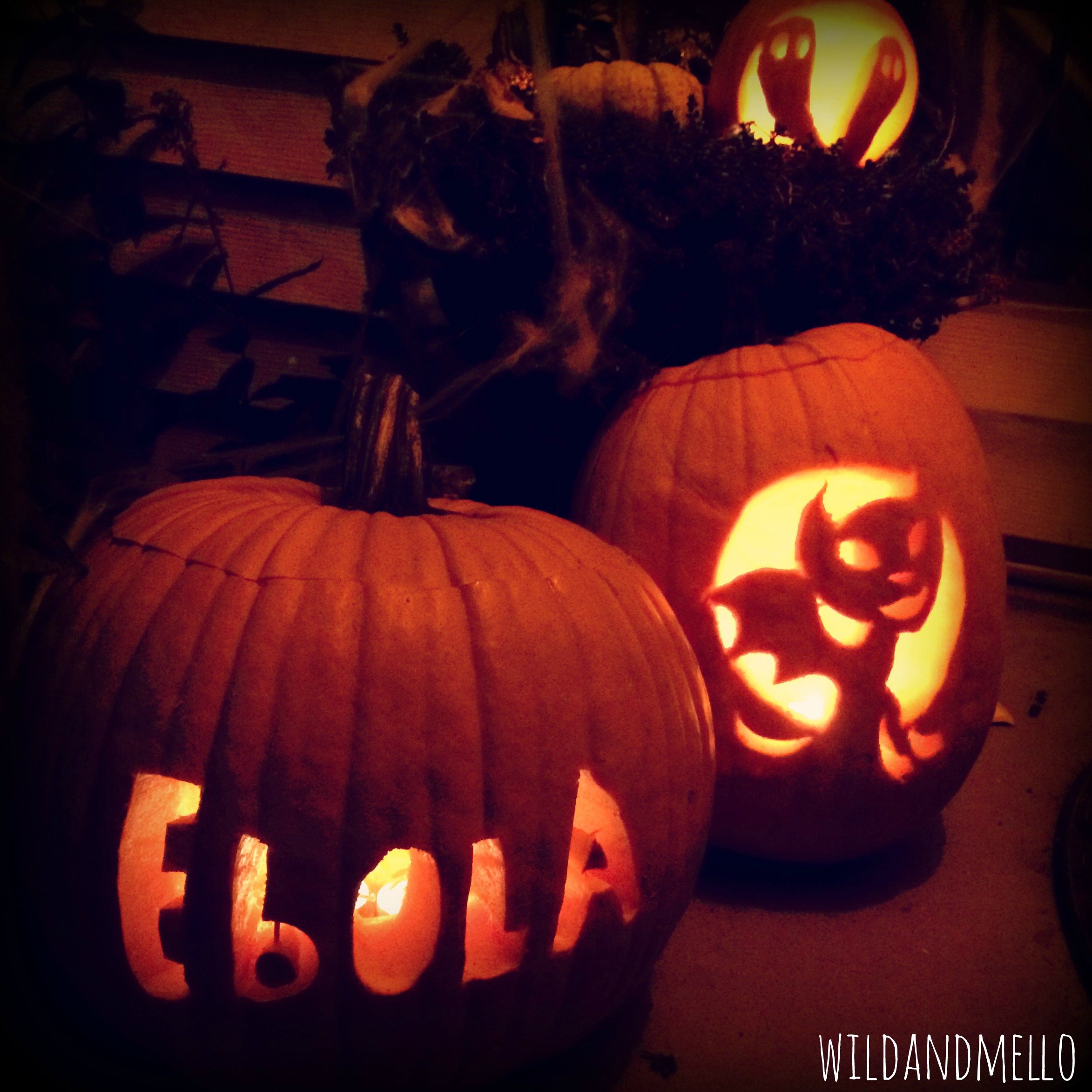 This year I haven’t gotten quite so motivated, I actually didn’t even carve my pumpkin when we were doing it last night! I did carve Mia and Carvers pumpkins though π a very creative ghostly pumpkin and a fun face! Mike carved out a cat-bat for Lilly and a very scary “Ebola” pumpkin!